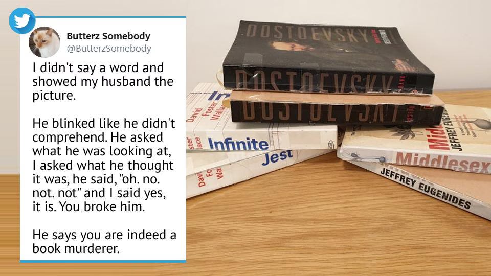 The man who owned these books allegedly ripped them in half in order to make reading and transporting them more convenient. People got very worked up about it. In all likelihood he was just trying to get a rise out of people, but like, why did it work? Who cares what he does with his copy of Infinite Jest? It’s his. He bought it. It probably cost him $15. You can find your own copy in literally any bookstore in the world. It’s worthless. And this copy is even still readable!!! You can still literally use it for its intended purpose!!!