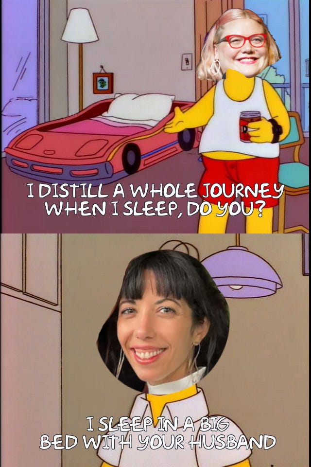But Lindy is a modern woman. She was access to modern psychological care—she has therapists, at least four by my count—and one imagines that the practitioners of this care must want what is best for their patient’s mental well-being. So where exactly are Lindy’s therapists during this whole process? One of Lindy’s therapists, Judith, tells her she has ADHD and sends her to get her “heart chakra” tamed by a hippy named “Rainbow.” Meanwhile, her couples’ therapist tells her of her polyamorous relationship that “three is more stable that two, if you think about it […] you can’t build a table with two legs.” WHAT THE FUCK ARE YOU TALKING ABOUT??? “Ah here’s a specific situation where three things are better than two things. Ergo, relationships are analogous to this situation, because it is a situation where three things is beneficial.”