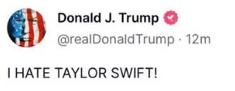See: for all Nelson’s claims that Taylor Swift is a ubiquitous target of MAGA for being a “powerful woman,” she neglects to mention that the biggest reason for this was Taylor’s own comments about Trump, which is why Trump famously posted this: